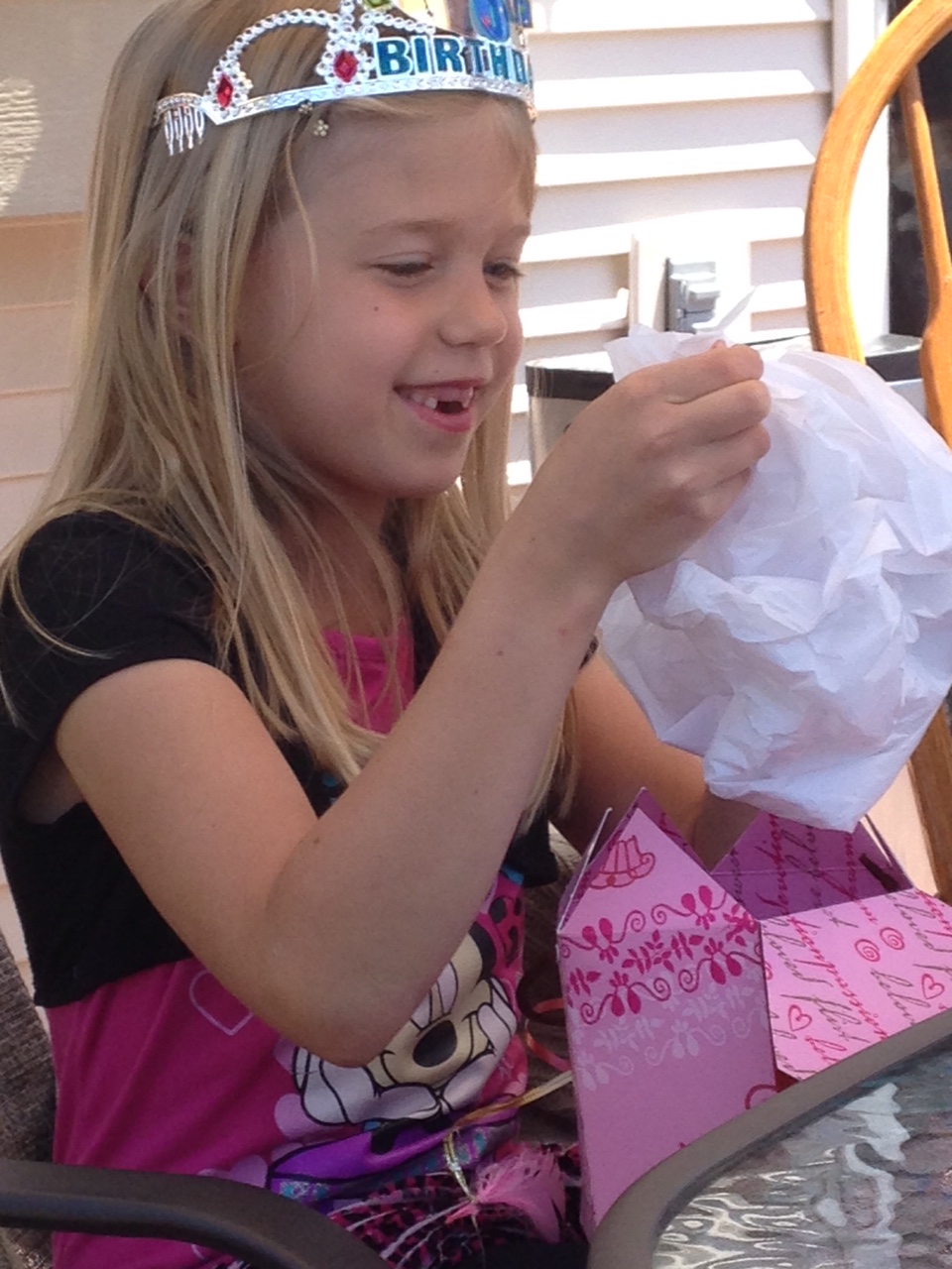 - Ellie turned eight last week. She put on quite a party! She got her ears pierced, but she still needs her two front teeth.